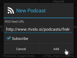Za podcast, ki se vam zdi zanimiv, kliknite ikono za RSS.