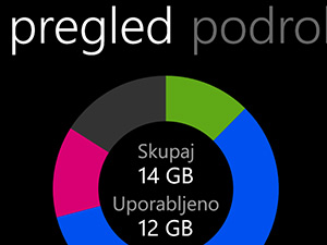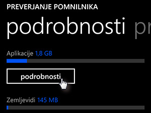 ![]() Povlecite na desno, da prikažete podrobnosti pomnilnika. Po katgorijah se vam bodo prikazala zasedenosti, kjer pri aplikacijah tapnete na podrobnosti. |