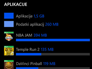 ![]() Tukaj bost videli, koliko pomnilnika zasedejo posamezne aplikacije. |