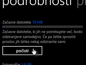 ![]() Pritisnite gumb za nazaj, kjer lahko v oknu z podrobnosti tudi počistite začasne datoteke (glej sliko). |