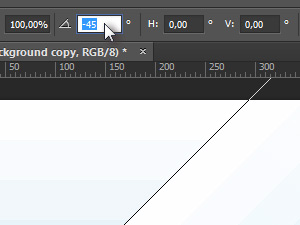 ![]() Kliknite zgoraj na Edit in izberite Free Transform. Nato pa v orodni vrstici kot določite -45 stopinj in potrdite spremembe s tipko Enter. |