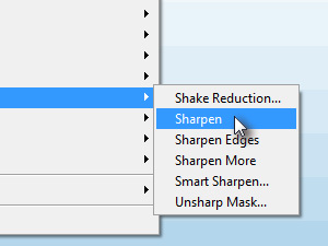 ![]() Nato kliknite zgoraj na Filter, Sharpen in izberite Sharpen. |