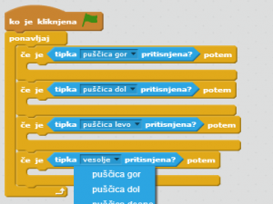 ![]() V [če je_potem] vstavite [tipka_pritisnjena?] [če je_potem][tipka_pritisnjena?] nastavljen na drugo tipko (gor, dol, levo, desno). |