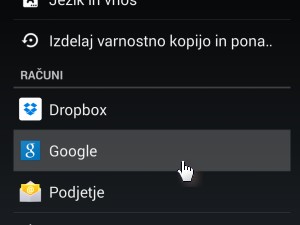 ![]() Sedaj se vrnite na glavni meni Nastavitev in pod Računi kliknite Google. |