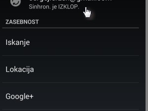 ![]() Pri vašem Google računu bo sedaj pisalo obvestilo, da je sinhronizacija izklopljena.