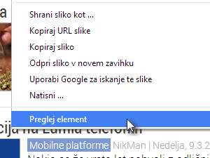 Pregledovanje elementov na strani odpremo tako, da z desnim miškinim gumbom kliknemo na poljuben element na strani ...