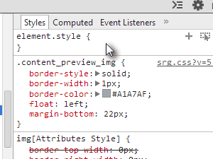 ![]() Na desni strani lahko najdemo oblikovne CSS stile, ki so uporabljeni. |