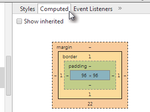 ![]() Če odpremo zavihek Computed, lahko vidimo točne dimenzije, ki jih zaseda posamezni element. |