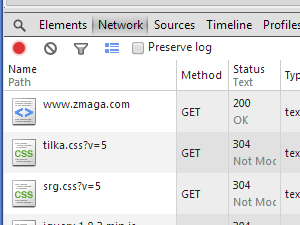 ![]() V zavihku Network vidimo, katere dokumente je naložila spletna stran.