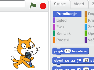 ![]() Najprej zamenjajte mačka s poljubno figuro (naprimer: mačka z mikrofonom) Osnove scratcha si lahko pogledate v prejšnjih dveh lekcijah: