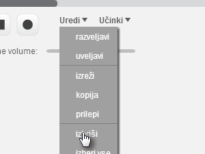 ![]() Če vam del posnetka ni všeč ga označite z miško, kliknite uredi in kliknite izbriši. |