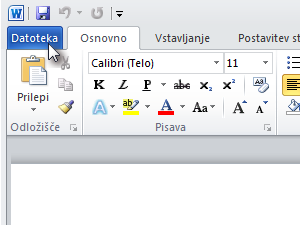![]() Odprite poljuben dokument v Wordu ali PowerPointu. Levo zgoraj kliknite Datoteka.