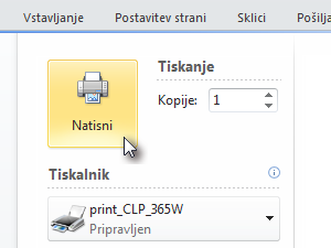 ![]() Na koncu vse skupaj potrdite in kliknite gumb Nastini (ang. Print).