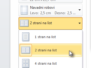 ![]() Za začetek lahko izberete, da boste natisnili dve strani na en list papirja. |