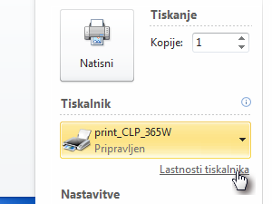 ![]() Kliknite Lastnosti tiskalnika (ang. Printer properties). |