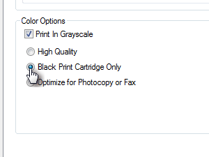 ![]() Če imate črnobel dokunent, obkljukajte Print In Grayscale (tiskaj črnobelo) in Black Print Cartridge Only (uporabljaj samo črno kartušo).
