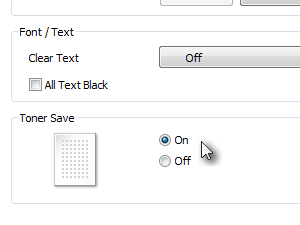 ![]() Nekateri tiskalniki imajo tudi dodatne nastavitve, kot je npr. način Toner Save (varčevanje s tonerjem) ter druge načine varčnega tiskanja..