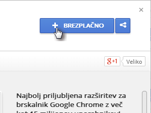 To je dodatek za Google Chrome. V Chrome ga lahko dodate tukaj. Kliknite + BREZPLAČNO.