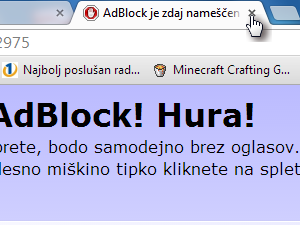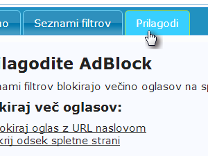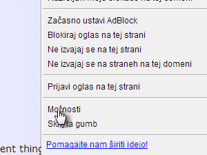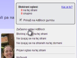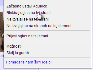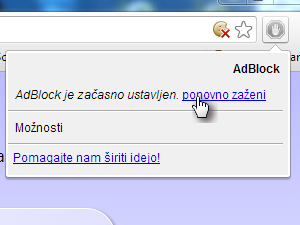![]() AdBlock lahko tudi začasno ustavite. (to naredite naprimer na spletnih straneh z igrami, ker igre lahko zameša z reklamami) |