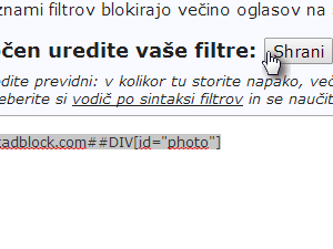 ![]() Če se kateri oglas slučajno ni odstranil kliknite Blokiraj oglas na tej strani. |