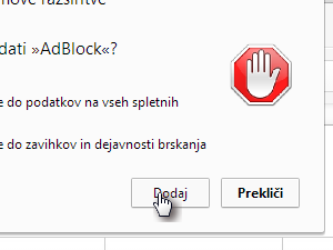 ![]() Google Chrome vas vpraša za dovojlenje. Kliknite Dodaj. |