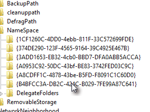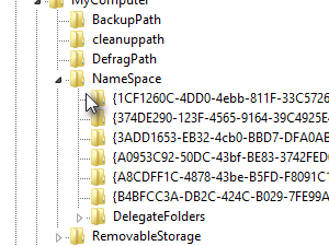 ![]() V tej mapi najdemo še več map s čudnimi imeni, to so ključi, ki ustvarjajo bljižnice v Računalniku. Poglejmo si njihov pomen: NAMIZJE {B4BFCC3A-DB2C-424C-B029-7FE99A87C641} DOKUMENTI {A8CDFF1C-4878-43be-B5FD-F8091C1C60D0} PRENOSI {374DE290-123F-4565-9164-39C4925E467B} GLASBA {1CF1260C-4DD0-4ebb-811F-33C572699FDE} SLIKE {3ADD1653-EB32-4cb0-BBD7-DFA0ABB5ACCA} VIDEI {A0953C92-50DC-43bf-BE83-3742FED03C9C} |