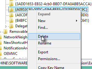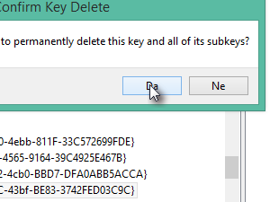 ![]() V kolikor želite bližnjico nazaj enostavno naredite novo mapo z istim ključem kot ste ga izbrisali. Postavite se v mapo NameSpace, pojdite pod Edit, New in Key. |