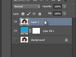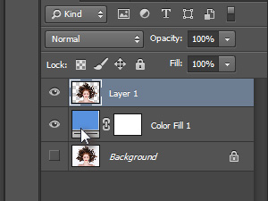 ![]() Kliknite z miško dvakrat na layer z barvo (glej sliko). Zgornji, dupliciran layer naj ostane označen. |