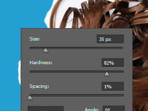 ![]() Kliknite z desnim miškinim gumbom na dokument in nastavite poljubno velik čopič ter Hardness okoli 82%. Spacing sem nastavil 1%. |