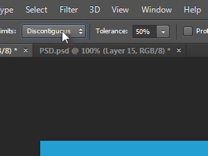![]() Zgoraj v orodni vrstici nastaviti Discontigious. Tolerance pa predstavlja moč zaznavanja ozadja. |