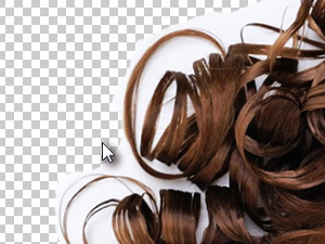 ![]() Pobrišite sedaj vse okoli las (glej sliko). Ozadje bi moralo biti kockasto oziroma transparentno. |