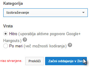 ![]() Nato določite še kategorijo in kliknete na gumb Začni oddajanje v živo. |