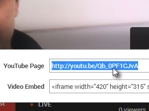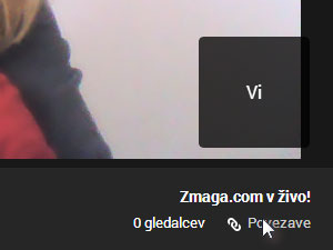 ![]() Začeli ste uspešno oddajati. Sedaj je vse le plod vaše domišljije, kako boste to uporabljali. Če želite vaš video posnetek v živo deliti z drugimi, kliknite na Povezave. |