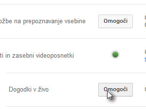 ![]() Potem pa odprite www.youtube.com/features spletno stran in spodaj pri polju Dogodki v živo kliknite na gumb Omogoči. |