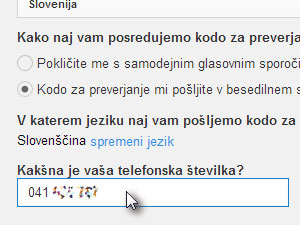![]() Odpre se vam stran za preverjanje, kjer označite Kodo za preverjanje mi pošljite v besedilnem sporočilu in spodaj vpišite vašo mobilno telefonsko številko. |