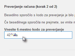 ![]() Preverite kratko sporočilo na vašem mobilnem telefonu, kjer bi od podjetja Google morali prejeti 6-mestno kodo, katero nato vpišite v naslednjem koraku na spletni strani. |