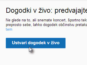 ![]() Nahajali se boste na strani dogodkov v živo, kjer kliknete na gumb Ustvari dogodek v živo. |
