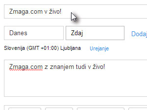 ![]() Odpre se vam stran, kjer vpišite poljuben naslov in opis dogodka v živo. |