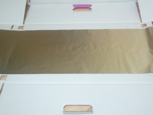 ![]() Škatlo raztegnite in nanjo razvite alufoljo. |