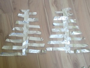![]() Alufolijo odvite in odrežite toliko, da znjo lahko prekrijete oba kartona potem jo po sredini zapognite nazaj. |