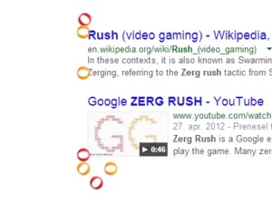 ![]() Če v Googlu poiščete zerg rush, pride veliko O-jev, ki napadajo rezultate iskanja, vi pa jih morate postreliti, preden vse pojejo. |