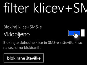 ![]() Potem v nastavitvah tapnite na filter klicev+SMS-ov. |