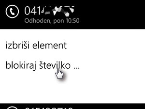 ![]() Poiščite številko, ki jo želite blokirati in držite s prstom na njej ... Trenutno je možno blokirati le številke, ki so v tej aplikaciji. V imeniku to še žal ne gre, vsaj z privzeto aplikacijo. |