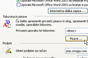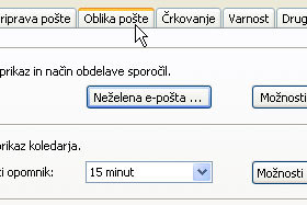 V istem oknu imate še vrsto možnosti za oblikovanje vaše e-pošte.