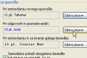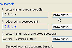 V mojem primeru se ob pisanju novega sporočila besedilo piše v pisavi Tahoma... |