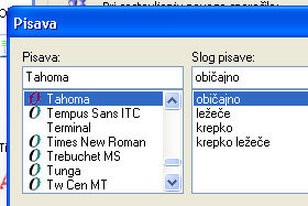Izberite poljubno pisavo, slog in velikost pisave. Jaz sem izbral pisavo Tahoma, Slog določil običajno in velikost 11. Spodaj lahko določite še barvo pisave. Jaz sem preko izbirnika določil črno. Kliknite na gumb V redu. |