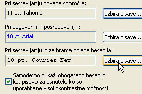 Odpre se okno Pisave, kjer določate poljubne pisave za vse vrste sporočil.