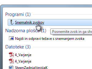 ![]() V Windows Start meniju v iskanje napišite Snemalnik zvoka in ga odprite. |