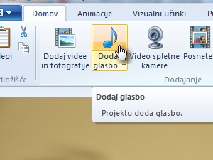 ![]() Nato kliknite dodaj glasbo, da dodate glasbo ali svoj zvočni posnetek. |