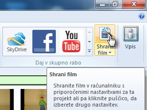 ![]() Ko končate z urejanjem, kliknite ikono shrani film. (NE shranjujte filma v HD ločljivosti, ker bo tako samo dolgo časa nalagalo, slika pa ne bo kaj dosti boljša) |